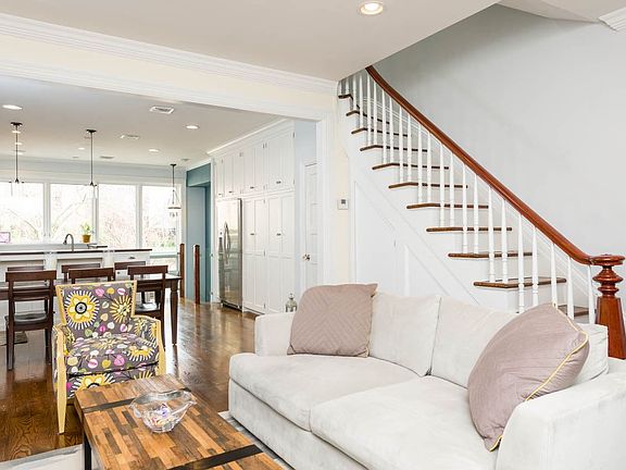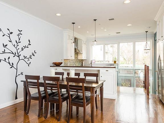 Original details complemented by modern conveniences grace this meticulous 3-story townhouse located in the heart of Hoboken. This wide 17x60 3 bedroom/3 full bath home boasts high ceilings with southern exposure and is flooded with light. The generous open concept living space has an abundance of storage throughout with a gas fireplace & central AC. The eat-in dining area is perfect for a family, with views of the plush outdoor garden from the floor-to-ceiling windows. Kitchen is designed with tons of custom built-ins including a desk space, also with soapstone countertops, glass mosaic backsplash, and stainless steel appliances including a cook-top and chef's hood. The upstairs bedrooms have original marble mantels, pine flooring, medallions, and a sky light. Master bath has beautiful marble, a glass stand up shower with rain shower head and Kohler fixtures. Stunning basement renovation was featured on HGTV; floors are polished concrete with 3-zone radiated heating, HVAC, 4-zone surround sound stereo, including backyard speakers. Summer kitchen has custom soft close and pull drawers, dishwasher, refrigerator, and wine cooler. Extra living den or bedroom plus two large storage closets. Last but not least, step out into your perfectly manicured backyard with an outdoor kitchen, granite counters, kegerator, and a Lynx built-in grill -- perfect for summer BBQs to entertain and enjoy time with family and friends. Centrally located, just steps to the NYC bus, close to PATH, and bars and restaurants. Parking available nearby for rent. All of this, just waiting for you to call it HOME!