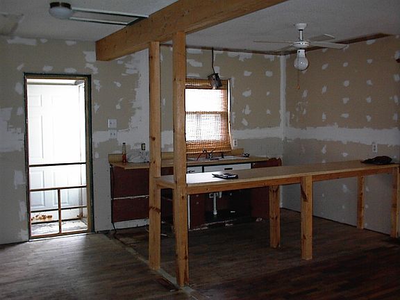 Walls between living room, kitchen and laundry have been removed. Ready for new partitions, if desired. Plumbing updated 2007. Central heat, but no central air-conditioning system. Whole-house exhaust fan. Siding on house and garage in disrepair. Taxes: $684.98