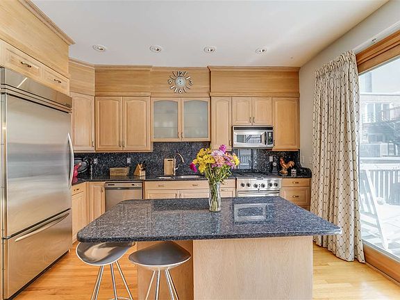 Extra large 2 br duplex with balcony and large roof deck. 256 9th has the space and comfort that you deserve. Large open kitchen features granite counters with matching backsplash, custom cabinets and stainless steel appliances and overlooks the dining area. Expansive living room for your comfort also leads to your private roof terrace.. upper level features 2 brs. Other great features include hard wood floors, central air and in-home washer-dryer. Located a short distance to restaurants, shopping and bus to NYC makes this the perfect home. Available 8/1/20