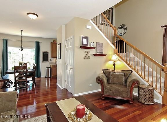 Your dream home awaits in the family-friendly Timber Trails subdivision! This impressive open-floor plan home has all the bells & whistles. The professionally landscaped yard leads you to the front door with extended porch, great for relaxing after walks on the neighborhood''s many paths. Step inside to a stunning 2-story foyer complete with Brazilian cherry hardwood floors, oak rails, and 9 ft ceilings throughout main level. The kitchen features 42" cabinets w/ crown moldings, lazy susan, deep sink & under cabinet lighting, and overlooks the family room with a custom fireplace mantle and abundance of windows bringing in natural light. 3 bedrooms upstairs, including vaulted master suite with deluxe bath and walk-in-closet. The full-finished basement provides additional living space, with office/bedroom and full bath. The over-sized cedar deck on premium lot allows for amazing views of the park and open area! Come see for yourself!