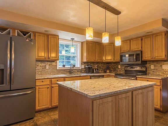 This Impressive Colonial Home is situated on over 1.5 acres of land and in a prime LOCATION close to Routes 12 & 140! This Open Concept Beauty features a remodeled Kitchen with Beautiful Oak Cabinets, Granite Counters & Recessed Lighting, a Front to Back Living Room, Large Dining Room & Half Bath. Wait! There's more! Enjoy Single Level living with a Custom First Floor Master Suite with Cathedral Ceilings, Built-Ins, His & Hers Closets and Vanity's, an Oversized Shower, and separate Jetted Tub. The main floor also showcases a Family Room that features Cathedral Ceilings, Large Closets and a Pellet Stove to warm those winter nights. A Second Master Bedroom with Walk-In Closet & 2 additional Bedrooms are located on the second floor with a Full Bath. Even more living space can be had in the partially finished Basement with Full Bath. Both the home and shed was recently updated with a Architectural Roof in 2018.