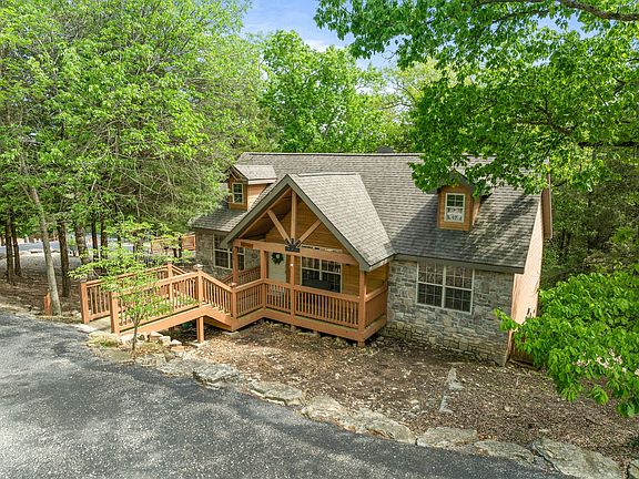 Simply Incredible, Iconic Bigcedaresque Cabin, turn-key & nightly rental approved, in the heart of golf loving Stonebridge Village! Stonebridge has it all: Award winning golf course, restaurant & bar, full service gym, swimming pools, tennis courts, basketball, walking/hiking trails, playgrounds...you & your guests will never have to leave the subdivision! Perched on the quiet side of prestigious Stonebridge Village you will find this immaculate & exceptionally maintained, peaceful cabin in the woods, nature retreat everyone is longing for. Step inside to soaring wood beamed ceilings in spacious open concept living featuring floor to ceiling stone fireplace, timeless hardwood flooring, & spacious/functional chef's kitchen w/granite counters, ample storage/prep space, stainless appliances, & both formal & impromptu bar dining nestled in window wonderland bringing the outdoors right to your breakfast table. Speaking of outdoors, step outside to enclosed back deck w/a setting of mature shade trees sheltering abundant local wildlife. Back inside retreat to one of two spa-like owner's suites complete w/both corner jetted tub to soak the day away & walk in shower w/ultimate privacy from split level floor plan. & the location! Less than 10 min. to popular Silver Dollar City, lake Loving Kimberling City w/multiple boat up restaurants, spas, local boutiques/eateries & quick & easy lake access at Port of Kimberling Marina. And less than 20 minutes to the heart of Branson with world class dining/live entertainment, endless shopping, epic adventures hiking/biking Mark Twain National forest, & trout enthusiast hotspot on Lake Taneycomo. Truly something for everyone to enjoy. Bonus! Reservations are already rolling in for the season! New cherished memories await for you and your guests at 256 Baldknobber Dr in the heart of the rolling Ozark Hills.