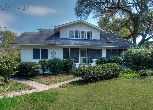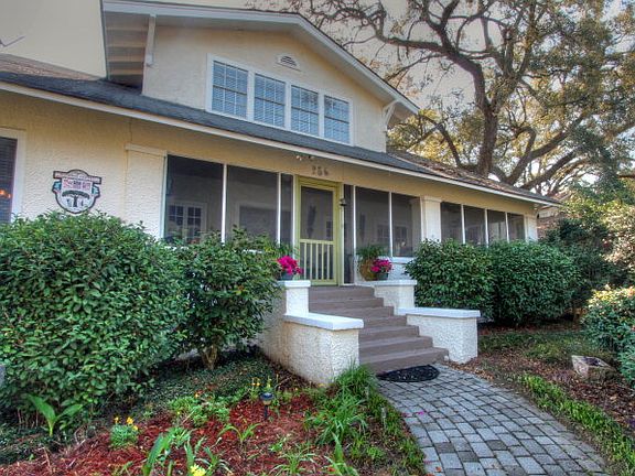 Historic Bay front home on the Bluff & guest house w/750 additional square feet. Amazing views & sunsets from the screened 35x11 front porch. Pristine Landscaping. Real exterior stucco on clay city brick walls. Original wood flooring. 2BR up 2BR down, 3BA, several living areas. Stainless appliances in open updated kitchen. Plenty of storage & closet space. Gunite Pool. One of a kind opportunity.