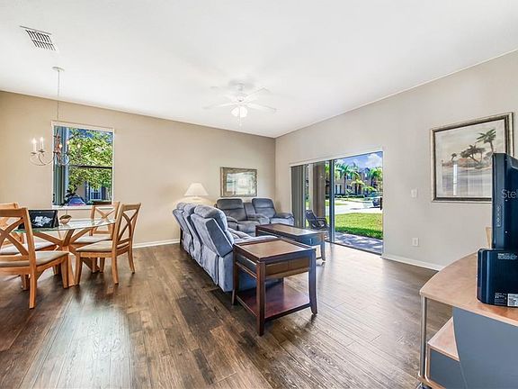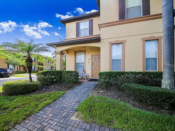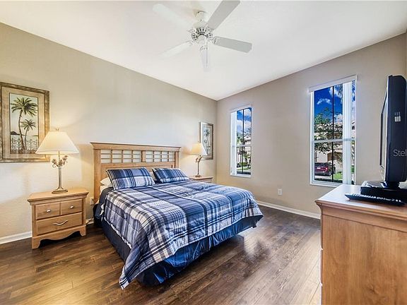 Immediate occupancy - MOVE IN READY. Corner unit and largest floor plan in Regal Palms Resort. 2 Master suites one of which with a balcony. Great for primary resident or short term rental. Laminate wood floors and Tile in all wet areas. Fully furnished - turn key. Cable TV -Wifi, telephone and more included in HOA fees. Regal Palms Resort, Luxury living as it's best is an exclusive private, gated Resort community located just 15 minutes from Disney World's Main Gate. The complex consists of 600 town house style homes in a lovely Tuscan Villa style setting with several amenities. You will be delighted with our 2 1/2 acre tropical swimming pool and lazy river oasis, complete with heated pools, water slide with waterfalls, outdoor & indoor Jacuzzis. Sun bathing terraces, a playground and a volleyball court with a pool side "tiki" bar. The fitness center has a therapeutic Jacuzzi, steam room and sauna along with elliptical equipment. The spa allows you to pamper yourself with massage, manicures and pedicures, etc. Inside you can enjoy dining at our restaurant and bar, surf the internet on your laptop using free Wi-Fi, or utilize our business center. We offer live entertainment (seasonal), event celebrations on holidays and even a market place for the must have items! The Guest Services is open 24 hours. Onsite, a 4000+ sq. ft. family style environment with games, food & fun for all ages. Interactive 360 Aerial Panorama, 3D Interactive Virtual Tours, Dollhouse views and 2D Floor plans available.