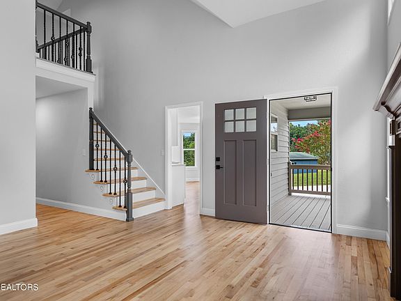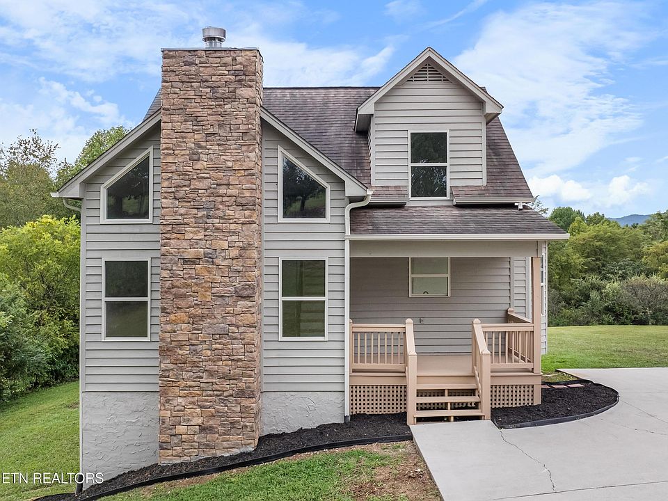 Experience countryside living at its finest in this beautifully remodeled home! From the moment you arrive, you'll notice the attention to detail throughout this spacious property. Step inside and be welcomed by an abundance of natural light filling the space. The living area boasts cathedral ceilings, a cozy wood-burning fireplace, and stunning hardwood floors. The all-new kitchen is an absolute standout, featuring solid oak cabinets, granite countertops, a farmhouse sink, a tiled backsplash, and brand-new stainless steel appliances. Large bay windows offer plenty of natural light and beautiful views of the mountain range. The main floor includes a newly renovated bathroom with luxury vinyl tile (LVT) flooring, a stylish vanity with a granite countertop, and a custom-tiled walk-in shower. A bedroom and a utility room complete the main level. Upstairs, you'll find two additional bedrooms and a full bath for added convenience. The finished basement provides even more living space! Complete with an additional living room / rec room, a brand new half bath, and a versatile room that can be used as an office or a potential 4th bedroom. Step outside to the expansive covered deck, perfect for entertaining or simply enjoying the privacy and view this space has to offer! A detached garage offers ample storage and the potential for a workshop. Nestled on a quiet dead-end road, this property provides unmatched peace and tranquility, just minutes from Norris Lake. Other updates include new HVAC, lighting, toilets, carpet, paint, doors, and more! This gem won't be on the market for long—schedule your private tour today! Owner/Agent.