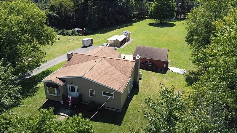 **COUNTRY LIVING** is what this home provides! Sitting on 1.40 acres, this ranch home is only 13 minutes away from the beautiful Raccoon Creek State Park. But getting to the city will be a piece of cake, as the closest I376 interchange is only 10 minutes away. Backyard vacations will be celebrated, as this property is surrounded by mature trees, lush grass and plenty of space to stretch out. Watch the seasons unfold the back deck, which includes a ramp for those needing assistance. Inside, you find 3 bedrooms, a sizable living room and a charming eat-in kitchen. The basement provides the potential for another bedroom or extra living space. Park your vehicle in the over-sized 2 stall garage. This home grants you the simplicity of nature and the serenity you have been waiting for!