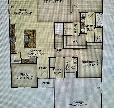 Two-car garageStudy off the foyerSeparated walk-in closetLarge open kitchenWalk-in pantryCenter islandCovered patio