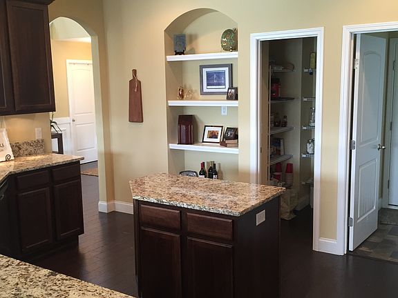 - RoomKitchenFeatures: Granite Counters, Kitchen Island, Pantry, Ceiling Fan(s), Eat-in Kitchen, Floors-Hardwood, Cabinets-Stained, Bar