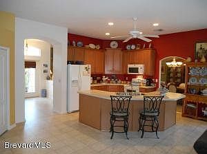 Well maintained home on wide canal with open floor plan, perfect for entertaining. Private deck overlooks the waterway & surrounded by lush tropical landscaping. Home features split floor plan, large eat-in kitchen, breakfast bar, 42 in cabinets, newer range/microwave, over-sized great room, formal dining room & living room. Master BR w/ wood laminate floors. Rm size sub to error.
