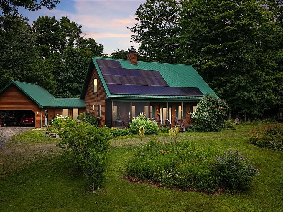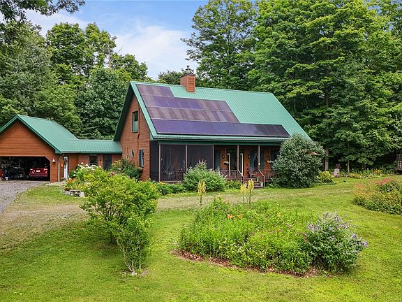 This is an incredible opportunity to own a custom designed, meticulously maintained home on 25 acres w/ woods, gardens, a creek, a pond & more! This home features a perfect layout w/ an open kitchen, living, & dining area w/ cathedral ceilings, wood stove, custom cherry cabinets, etc. 1st floor also offers laundry, pantry, primary bedroom w/ full bath, secondary bedroom & full bath, breezeway to the attached 2 car garage w/ automatic door opener, etc! On the second floor there is a 3rd bedroom & an open loft area w/ a sink which could be closed off for a 4th bedroom if desired or used as studio/office/play space. Enjoy the babbling creek and pond on the property from your wrap around deck or screened-in porch. Countless gardens and fruit trees and 3 storage sheds. The house is heated with radiant in-floor heat that can be fired with the house boiler or outdoor wood boiler. There are also minisplits for heating/cooling and solar panels for low utility bills! Full, 1300 sq ft walk-out basement could be finished. Home inspection offered to interested buyers. Additional 18 acres also available to purchase if buyer is interested. Any offers will be reviewed on Wed 7/31/24 at 5pm