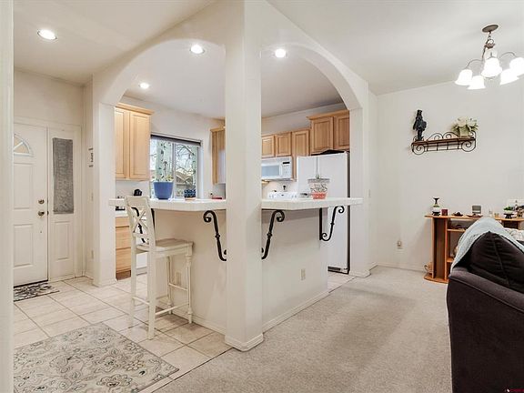 Townhome with 2 bedrooms, 2 bathrooms and private garage. All appliances included, including the washer and dryer. Plumbed for central vacuum. This open floor plan is called The Peaks floor plan and has a double master suite. Open and spacious with vaulted ceiling in main living area. West facing front, with an east facing and covered back patio with an extremely low maintenance and private backyard. Vinyl fencing. Large 2 car garage. The front yard landscaping is maintained by HOA. Snow removal included. Crossroads Park is a well kept and beautiful community with walking path and gazebo for homeowners to enjoy. *Seller is having the countertop/sink/faucet replaced. New toilet seats as well. HOA is scheduled to replace roof and repaint the exterior stucco in 2023.