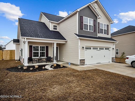 Welcome to your new oasis! This gorgeous home is not only spacious with its open floor plan downstairs, it boasts a large bonus room upstairs, and a sprawling backyard and patio ready to be enjoyed as the weather warms up. The neighborhood also offers a community pool and clubhouse. It's just a short drive to shopping in Jacksonville, nearby beaches, Camp Lejeune, and much more! Schedule your visit today because this home won't sit for long!