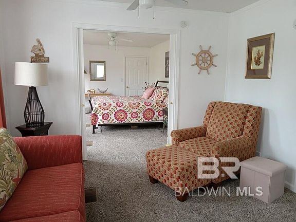 Coastal Cottage Charm with Modern Comforts! Welcome to your seaside sanctuary! This home boasts two bedrooms, one bath, and sold fully furnished with delightful beach decor throughout and furniture conveys at $0. Home has just had new plumbing and a new water heater added. Nestled in a serene coastal community, this retreat offers both relaxation and convenience. As you step inside, you're greeted by a 2 cozy living spaces that filters the gentle coastal light. The inviting atmosphere is perfect for unwinding after a day of sun and sand. Need extra sleeping space for guests? No problem! This home sleeps 6 with the versatility of the sleeper sofa. The heart of the home is the well-appointed kitchen, featuring new appliances including a fridge and dishwasher. Whether you're whipping up a gourmet meal or simply enjoying a morning cup of coffee, this kitchen has everything you need. This home also boasts practical upgrades, including a new HVAC compressor and heat pump, ensuring comfort year-round and provides peace of mind and durability against the elements. Step outside to discover the convenient utility shed with a half bath with shower, perfect for storing beach gear and keeping sandy feet at bay. The home also features new underpinning, ensuring stability and longevity for years to come. Relax and unwind in the lush coastal surroundings, knowing that this home has been meticulously maintained with new carpet and is freshly paint throughout. Don't miss the opportunity to make this coastal retreat your own. Schedule a viewing today and experience the tranquility of seaside living! This property is in the highly desired, safe, pet friendly, beach neighborhood of Spanish Cove, a coastal paradise gracing the shores of Perdido Bay, just 5 minutes from the Lillian boat launch and only 15 minutes from the sugar white beaches of the Gulf of Mexico. This is a must see. Buyer to verify all information during due diligence.