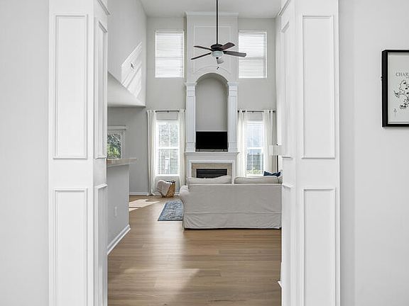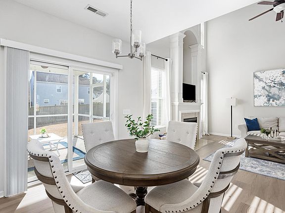 Welcome to Sophia Landing where you can enjoy the convenience of nearby shopping, dining and healthcare amenities while residing in a quiet and serene location. This updated home features a wonderful open floor plan with beautiful modern touches. Upon entering this home you are greeted with spacious open floor plan with an abundance of natural light, newly installed High-Grade, LVP flooring, freshly painted walls & cabinetry, and designer light fixtures.The bright open living room is spacious and perfect for hosting gatherings, featuring vaulted ceilings, a cozy fireplace, and a seamless connection to the kitchen, screened-in porch, patio & yard. Meticulous attention to detail is presented in the kitchen with freshly painted white cabinetry and newer LG Stainless Steel Appliances.Enjoy your meals in the sunny eat-in kitchen or the formal dining room. The formal dining room could easily be used as a great first floor home office as well. The serene Primary Suite is conveniently located on the first floor and overlooks the private backyard. The ensuite bath offers dual sinks, a garden tub & shower, and a large walk-in closet. The first floor also includes the Laundry Room, complete with practical shelves for efficiency. Upstairs, discover two spacious guest rooms, a full bath, and a loft/bonus room, perfect for a home gym, office, or media room. Step outside and immerse yourself in the screened-in porch, just off the kitchen, and private fenced-in backyard, where relaxation and fun await. The backyard is a sanctuary of outdoor living, featuring a patio for cookouts and entertaining. Sophia Landing is a realm of delights, complete with a community pool, park, and sidewalks, offering easy access to schools, shops, and restaurants. Highlighted Features: New LVP Flooring- High-Grade (Coretec with cork backing- lifetime warranty) Newer LG Stainless Steel Appliances Crown molding details First Floor Primary Suite First Floor Laundry Room Upgraded lighting New Interior paint Nest thermostats Pella Glass Front Door Gas Fireplace Two-Car Garage Screened-In Porch Privacy Fence | Fenced-In Backyard