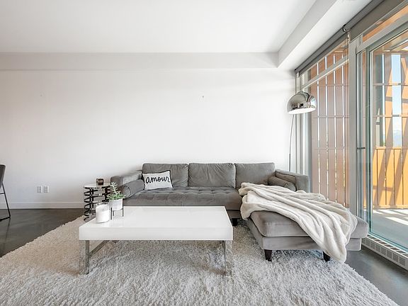 Welcome to Mount Pleasant's Jacobsen by Intracorp. This stylish & thoughtfully designed 1 bed 1 bath features a fully integrated sleek kitchen with Bosch and Blomberg appliances, beautiful custom built-in closets throughout, frosted glass bedroom doors, rain shower & modern polished concrete floors. This blank canvas can be yours to enjoy or use for a great rental income. Enjoy expansive city and mountain views from the spacious living area and private 92 SgFt patio. Amenities include a well-equipped gym, bike room, workshop, and gallery space/party room. 1 parking included, pet and rental friendly. This trendy spot is just steps to Main Street shopping, dining, breweries, Olympic Village, Emily Carr, new tech hub, Skytrain expansion, SeaWall, parks & grocery stores. A must see!