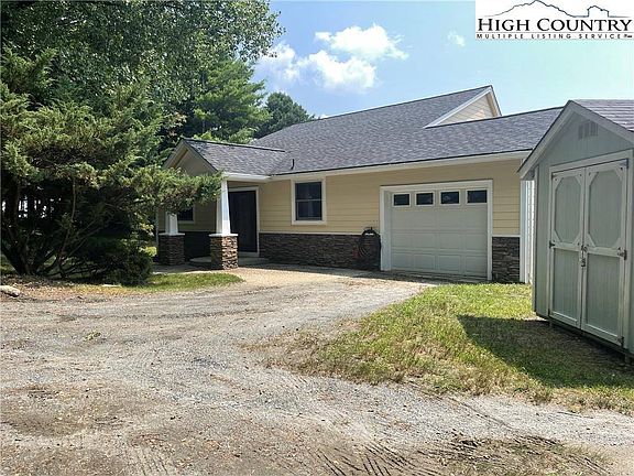 Stunning Views! Abundance of Wildlife. Enjoy the views from every main room in this 3 bedroom/2.5 home. Large windows, lots of sunlight, privacy, the views and much more that make this home desirable. Nestled at the end of the cul-de-sac with trees in-between the neighbors. Located 15 mins from Boone. Wilkes & W. Jefferson approx 20 mins away. Beautiful drive into the neighborhood, just 1.5 miles off Hwy 421 and less than 2 miles to the entrance of the Blue Ridge Parkway. Kitchen has wood cabinets with gorgeous granite countertops. Walk down into the spacious sunken living room that has ceiling to floor windows, wood flooring and a stone see-thru fireplace in the living room and master bedroom. Numerous flower/garden beds. Master bath has a soaker tub, walk-in shower, and radiant floor heating. Large walk in master closet. Large 2 level deck great for entertaining. Attached one car garage. Heated garage. Small storage shed. Community pond.