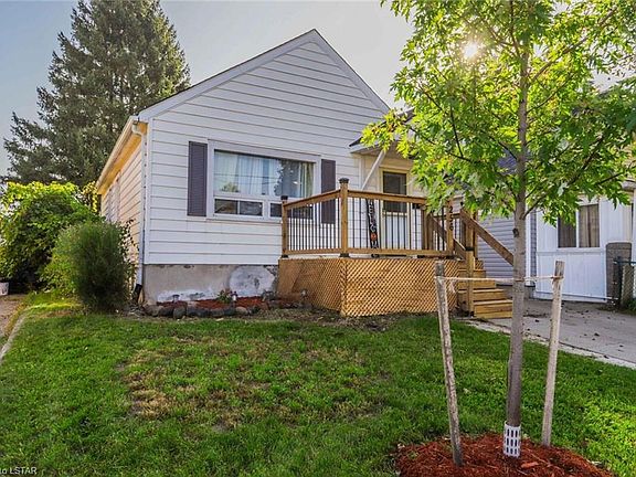 Sweet little bungalow with finished basement on a good sized private lot. Handy location for an easy short drive to the highway and within walking distance to public transportation, grocery stores and Dollarama. Well maintained 2+1 bedroom, 1 bath, with updates. Hardwood on main, sleek kitchen, nice 4 piece bathroom, dining room, living room and two good sized bedrooms. Front and Side entrances, brand new porch, long driveway and also widened at the front to park 2 cars side by side, back yard patio, almost fully fenced, fire pit and a storage shed. Lower level has a finished family room and a bedroom with a window(not egress), and a large utility/laundry room with plenty of storage. Furnace and roof shingles in good shape, 100amp electrical breaker panel, updated windows, plus the appliances are included. Solid home, nice property, and low property taxes. Great for downsizers, smaller families and first timers trying to get into the market.