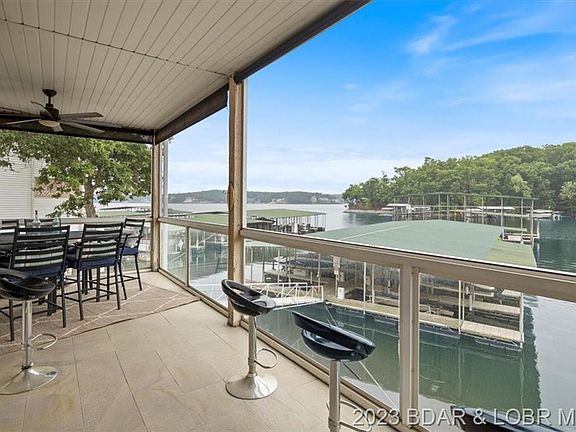 Welcome to lakefront living with scenic views of the Main Channel and cove from the screened-in deck, living spaces and Main Bedroom. Nestled in a cove on the shores of Lake Ozarks, this end unit 3 Bed + 2 Bath condo in Emerald Bay is the perfect lifestyle asset or investment. Remodeled (2020) with contemporary finishes, the spacious open plan condo showcases a modern look. Professionally refaced cabinets, granite, composite sink, backsplash and SS appliances pair well with the updated plumbing and lighting. The custom tile flooring layout in the main living areas compliments the remodeled fireplace and veneer surround. Owners Suite features an updated bathroom, walk-in and access to screened-in deck. Unit is located near the community dock, 2 PWC spaces, 12x36 boat slip, clubhouse and pool making transitions to lake life seamless. Being sold with furniture, the condo is ready for your finishing touches. Conveniently located off HH & 14 mm - near shopping, entertainment, golf & dining!