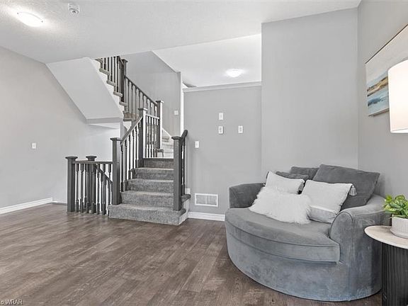 Welcome to 256 Falconridge Dr., nestled in the sought-after Kiwanis Park. This meticulously maintained, freehold townhome offers 2,022 sqft of living space. Boasting a unique design & an array of possibilities. With ample storage, 3 spacious bedrooms and 3 bathrooms, plus the potential for a 4th bedroom can easily be customized to fit your needs, consider transforming it into a rec rm, an office, or a home gym. A bright & airy entrance, open to below w/high ceilings guides you to the main floor offering an inviting space for entertaining. Tasteful upgrades, laminate flooring, California shutters, elegant light fixtures and oak railings all add to the charm of this home. Outside, you will find an impressive, curated garden oasis surrounded by the modern-style concrete paved patio. The 2nd level features a well-appointed kitchen & dining area that overlooks the foyer & living rm. Stainless steel appliances, a water line to the fridge, pantry, quartz countertops & under cabinet lighting make this kitchen both functional & stylish. Enjoy the views from the Juliet balcony looking off from the dining room. On the 3rd level, you'll find 3 generously sized bedrooms, a 3pc bathroom, & a luxurious 4pc ensuite, w/beautiful quartz countertop, complete w/double sinks. The primary bedroom & ensuite are located just a few steps up from the two bedrooms and a main bathroom giving it the feeling of a private suite. The primary bedroom offers low windows & a walk-in closet, adding to its allure. The basement level features a 2pc bathroom, a private entrance to the garage & an upgraded laundry rm/mudroom w/built-in cabinetry, benches & abundant storage. Conveniently located, surrounded by great schools, numerous amenities, the Grand River, walking trails, dog parks, River Ridge & Kiwanis Park. Easy access to the Conestoga Parkway, just minutes away from uptown and downtown. Don???t miss this rare opportunity to live steps from the desirable Kiwanis Park! 2023-08-26