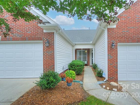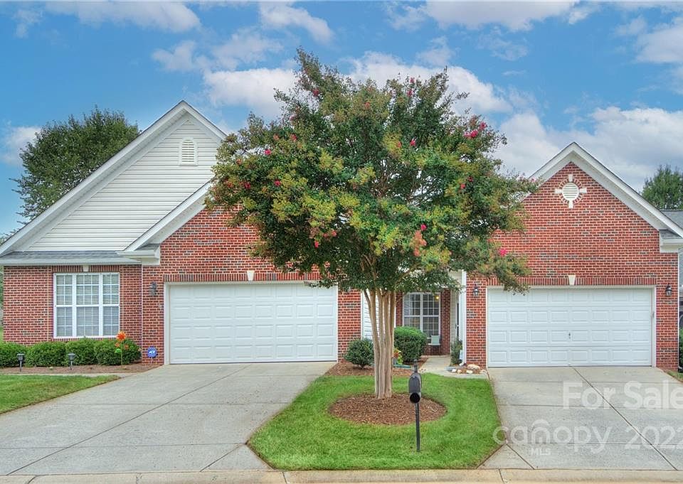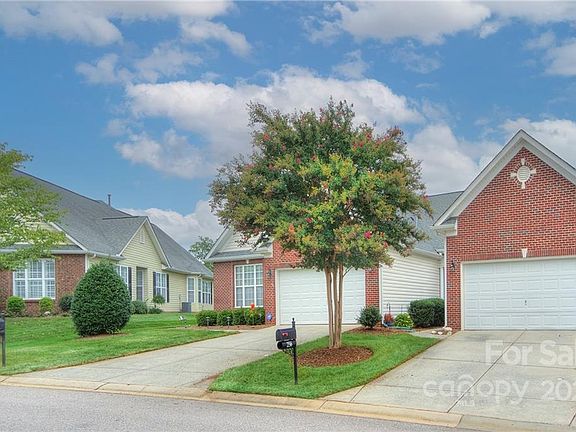 Lovely single level townhome is amenity-rich 55+ community. Easy access to 77, 485, Publix and an emergency room. This home boasts large kitchen with double wall ovens, cooktop and tons of cabinet/counter space (all kitchen appliances convey). Butlers pantry with even more cabinets flanked by bookcase. Expansive wood floors flow through home. Great room w/ gas log fireplace. Primary bedroom with large bathroom & walk-in closet. Secondary bedroom does not have a closet but is fully functional as a bedroom or flex space (currently used as a den with sleeper sofa). Good storage; laundry with two walls of cabinetry and utility sink. Never a bored moment if you choose to engage in the activities available. You can be as connected or as private as you desire. This is a community that cares for and watches out for each other. New HVAC 2022. Direct gas line for grill. Home is in move-in condition.