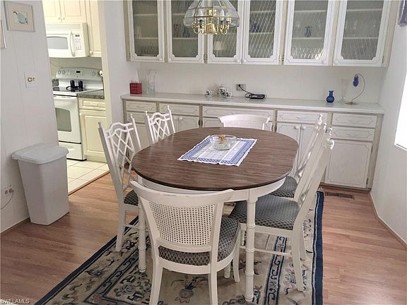 With over 1,200 sq. ft. of furnished living space this home is truly too good to miss! Lots of cabinets in kitchen and a breakfast bar. Formal dining room open to spacious living room. Ceramic tile floors in kitchen and baths, wood-look laminate in living area and carpet in bedrooms. Ceiling fans and window blinds throughout. Walk-in tile shower in master bath. Washer/dryer in the storage shed. Price includes a share for the lot and ownership in the co-op, so you will own real property. Golf cart included. Monthly fee is $307 and includes lawn mowing/edging, trash pick-up and enjoyment of all amenities in the community. Orange Harbor is a 55+ resident-owned, pet friendly waterfront community with a heated pool, clubhouse and many planned activities. It is located close to shopping, restaurants, downtown Ft. Myers and Manatee Park. Background/credit check required. Come and take a look!
