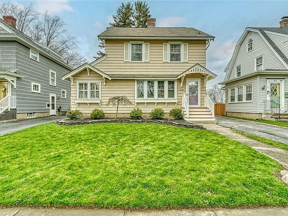Welcome home to this charming colonial with all the modern amenities and updates you desire with all the character of yesteryear ~ Leaded glass, gumwood trim, hardwood floors & more ~ New front steps ~ Updated kitchen with new cabinets, counters, fixtures & included appliances ~ Spacious formal dining room with sliders to the back yard ~ First floor laundry and full bath ~ Office/Den or Playroom flooded with natural light ~ Large Living room with wood-burning fireplace and arched French doors off entry way ~ Updated & spacious 2nd full bath on 2nd floor with new vanity & fixtures ~ 4th possible bedroom in finished walk-up attic space ~ 2016 90% efficiency furnace ~ 2019 Central Air ~ 2021 Freshly painted deck in fully fenced yard ~ Vinyl replacement windows (almost all) ~ Great location, just blocks away from Genesee River Trail & Turning Point Park! Delayed Negotiations until Tuesday 4.26.22 at @ 6pm EST