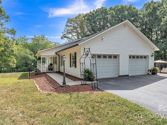 This stunning 2.5 acre estate is nestled in the foothills of NC and features 3-bedroom, 3-bath ranch-style home with a full basement (partially finished). Highlights include an impressive 18X36 heated inground pool, pool house, charming gazebo, along with a spacious 30X42 detached garage that includes an oil pit, water, and other amenities for automotive projects. There is also a 12X14 storage shed. The property is well-appointed with a rocking chair front porch and a covered back porch overlooking the pool. Updates to the interior include stainless steel appliances, new paint, updated LVP flooring & carpet in the bedrooms and more! This home offers ample storage options with oversized garages on the main level and the basement. Other improvements include new roofing on all structures (2023) and updated heat pumps in 2016. Additionally, solar panels for energy efficiency and no deed restrictions make this the perfect retreat for homeowners seeking both tranquility and practicality!