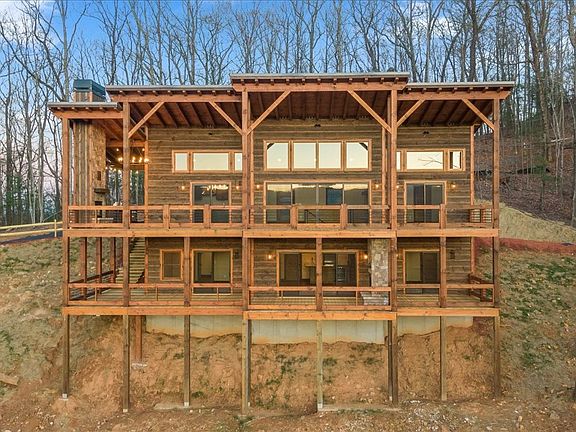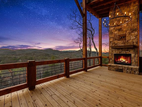 Spectacular SUNSET YEAR ROUND MOUNTAIN Views! 3br/3.5ba Impressive Mtn Modern Complete New Construction. No detail overlooked! Perfect mix of modern & rustic elements! Main floor covered entrance w/rock accents, an open concept w/great room w/linear fireplace/soaring cathedral ceilings/wall of windows/massive sliding glass doors, ample dining space, spacious kitchen w/high end appliances/granite CTs/large island/custom cabinets, master suite w/walk in closet/tile shower/double vanity, half bath, & true laundry room. Expansive windows all across the front to bring the views inside. Covered back porch spanning length of home w/exterior fireplace & outdoor kitchen. Lower level provides the perfect space to entertain w/game room/wet bar, 2 guest bedrooms/baths, walk in closets + 2nd level of porches w/2nd exterior double sided fireplace. Perfect location in gated community nestled adjacent to the Cohutta Wilderness area w/tons of outdoor recreation/hiking/horse back riding/fishing. Just minutes to Downtown Blue Ridge.