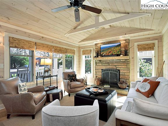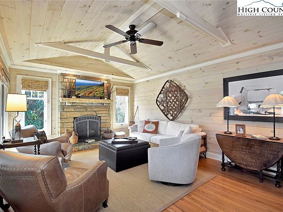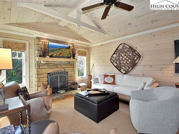 Enchanting 2-bedroom, 2-bathroom cottage in Blowing Rock. Situated near the Blowing Rock Country Club. This charming home boasts vaulted tongue and groove knotty pine ceilings and an open floor plan, providing a spacious and inviting atmosphere for relaxation, or entertainment. Spend crisp fall evenings in front of the cozy stone fireplace. The kitchen has granite counters, stainless steel appliances, and beautiful hardwood floors. The bonus room in the partial basement is finished and is not included in the heated square feet. Easy accessibility as well as one-level living. Relax on the covered porch or entertain on the open back trex deck. Unwind and relax after a day of exploring in your hot tub. Includes a one-car garage for added convenience. Experience the charm of old Blowing Rock in this inviting retreat. Comes furnished please see the attached inventory list. Schedule a tour today to make it your own! LP Gas does not convey.