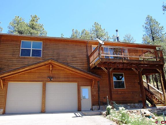 Beautiful cabin with great views in Forest Lakes. This 4 bedroom home features a stunning river rock fireplace, custom cabinets, and a large wrap around deck with wide open views. This home feels very private, surrounded by large pines. The main bedroom is spacious, with a walk-in closet and an ensuite with a large soaking tub. There's a 2nd bedroom upstairs and 2 bedrooms on the bottom floor, allowing for a little separation for guests or an office. A yard for dogs is already fenced in! Located only 30 min to Durango, this would make a great primary or second home. This community has a private lake for their homeowners as well. Schedule a time to see this home today! Additional 1 acre lot next door is also available for purchase.