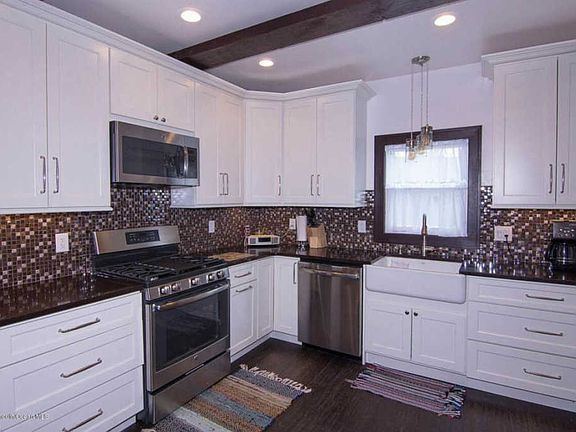 Step into a world of charm from an adorable covered porch, but stay cool with the help of central-air. This wonderful historic wood frame home is rich in character and boasts a beautifully hand carved wooden staircase and original red oak wood plank floors throughout the dining room, living room and parlor. The dining-room is completely wood paneled, circa 1920's. The brand new kitchen comes complete with quartz countertops, stainless-steel appliances, farm sink, soft-close cabinetry, beamed ceilings, walk-in pantry w/ barn door, 1/2 bath and entry to the fenced-in yard, perfect for pets and kids. Lots of updating in recent years: second floor full bath, roof, siding and gutters all done in 2015. It's like a step back in time, but with all the modern conveniences.