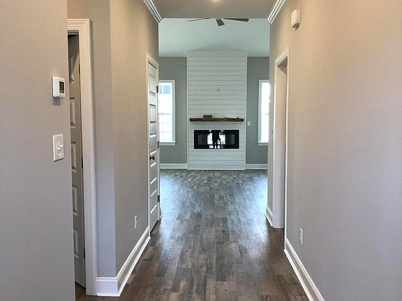 Spacious split bedroom design with 3 bedrooms and 2.5 baths. Open concept plan with island kitchen. Quality finishing from Grimes Built Construction that include, crown moldings, granite kitchen countertops, covered porch, LVP flooring in main areas, shiplap accents, linear fireplace, and more. All closets and pantry are custom, and wood built, no wire shelving. Vaulted Ceiling in living room, walk in closets and more.