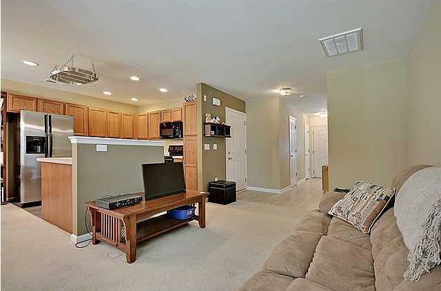 Bereford Commons proudly presents this two bedroom, two and a half bath, one car garage town home. After a day relaxing by the community pool, proudly come home to 1,268 square feet of living space where you'll find high ceilings, an open floor plan and a patio in the back that looks to the private wooded area. The living room, dining area and kitchen are all open to each other which easily lends itself to entertaining and visiting with guests. The kitchen boasts ceramic tile flooring, recessed lighting, plenty of storage in the cabinets and lots of counter space for cooking. A powder room on the first floor means guests do not have to go upstairs to use the restroom when visiting and access to the patio can be found in the dining area. Upstairs the owner's retreat boasts a soaring ca