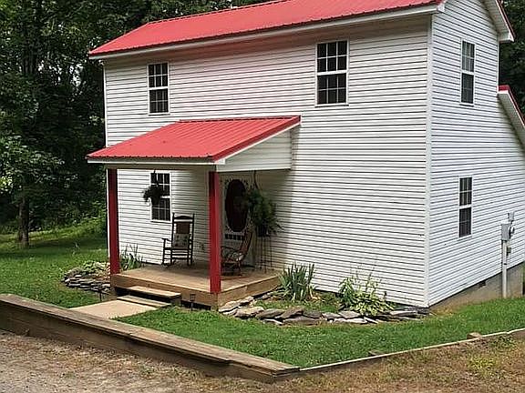 Sweetest little cottage on 5.1 acres in Kelso, TN, joining the Elk River with one of the most beautiful gravel bars on the Elk. 2Bd/1b home (approximately 1000 sq ft) has vinyl siding, metal roof, hardwood floors throughout, wood ceiling exposed beams downstairs, tin ceiling in dining area, outdoor building. Perfect for small family, starters or those downsizing. It has been a short-term getaway rental for the past few years, as the Elk River Sugar Shack. if you'd like to check it out on AirBnB. Window air conditioners remain along with free standing electric heaters. It has a shared driveway. Currently hooked to property owner's water system, so you will need to add your own water source within a reasonable amount of time, so it is being sold as is. We will be happy to show you our water system. Small acreage on the river is hard to find and this one has very easy access for launching your kayaks or canoes. (The property joining it will be for sale after this property sells or could be purchased together only if you'd be interested in both.)