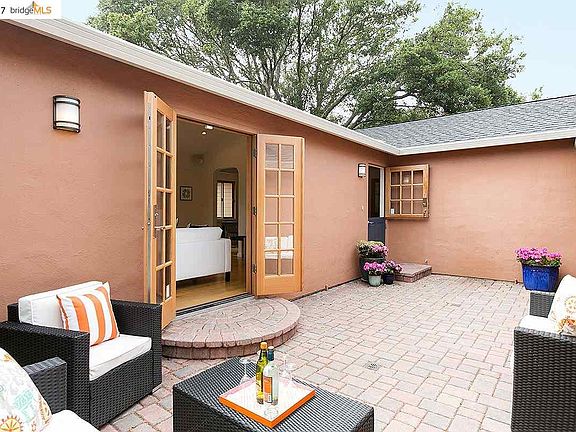Mediterranean feel! This handsome home is designed around a central courtyard. Beautifully maintained & tastefully updated. Dramatic raised ceilings-State of the art kitchen, inspiring view, luscious deck & verdant garden. Lower level, versatile layout w/ in-law potential. Prime loc!