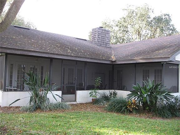 GATED COMMUNITY WITH ACCESS INTO LAKE HARTRIDGE ON THE CHAIN-OF-LAKES! Well maintained home with open floor plan and vaulted ceilings is move-in ready. Gorgeous lot with mature oaks and lush tropical landscaping. Enjoy outdoor living on the spacious 327 sq. ft. "L-shaped" screened patio accessed by four sets of French doors opening out from various rooms in the home. Other features include: total irrigation; over-sized double garage; circular drive plus driveway into garage; real brick on the walls and floor of the covered front entryway; ceramic tile flooring in screened patio; split master bedroom plan; formal dining room plus breakfast nook off kitchen; double-faced wood-burning fireplace between living and family rooms; indoor laundry room with laundry sink & storage cabinets; huge walk-in closet in MBR; community lakefront common area has a fishing pier and paved boat ramp for the private use of subdivision property owners. Home is conveniently located close to shopping, medical centers and recreation facilities. Make this home a "must see" before you decide on a purchase!
