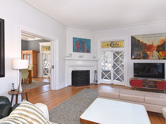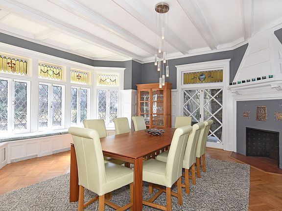 This sun drenched Victorian has open rooms with tall ceilings and gorgeous details, including exquisite stained glass windows, 4 fpls, pocket and French doors, beautiful hardwood floors and custom built-ins. Located on a coveted Pelham Heights street, in easy walking distance to Blue Ribbon schools, Metro North, Town & playgrounds, it sits on almost 1/2 acre with a large screened porch, generous slate patio and a huge well landscaped yard. A luxurious master suite includes a BR/fpl, large office, multiple closets and an oversized bathroom. Extensively renovated and enhanced by present owners including a brand new state of the art kitchen with an island, sitting area and quartz countertops. Mudroom, laundry and powder room also on 1st floor. Present owners also created a spectacular 1,100 SF lower level recreation center including a sitting/TV area, billiard space, gym, wet bar and storage. The 3rd floor includes a new expanded bathroom, huge family room and private guest room.