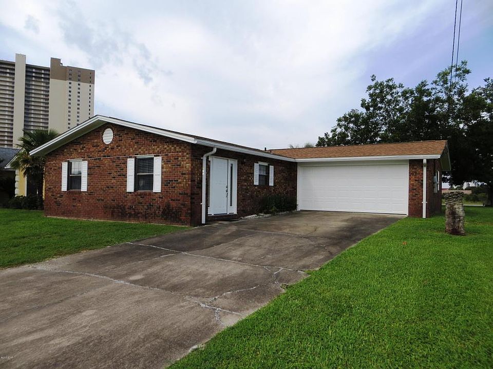 Great 3br 2bt brick home just a tick away from the beaches and Pier Park. The home has a view of Lullwater Lake and the lot borders both Lullwater Dr. and Libson St. 60x146 lot. It has a new roof, A/C, water heater, complete interior overhaul paint, carpet, tile, counters, appliances etc...even the front door is new. The yard has a sprinkler system that is hooked to a well. It is just a great little home nestled in the El Centro Beach area.