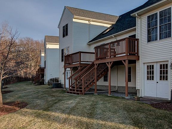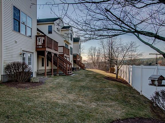 Mint condition townhouse in desirable Highfields Golf & CC. Open space layout has fireplaced living room with soaring vaulted ceiling, sliders to deck, oak flooring (recently refinished). Large kitchen w/granite counters and raised granite breakfast bar, recessed lighting, SS appliances, oak floor - adjacent dining area w/wainscoting, oak flooring. Half bath on first floor with laundry. Large master bedroom with two closets - one a walk-in, the other is very deep. Generous sized secondary bedroom. Full bath with ceramic tile, vanity with granite top. Beautiful walk-out basement with 9-lite double doors and double-hung windows for excellent natural light, and the basement is roughed for a future bath. Gas heat, town sewer and water. Minutes to Pike, 495, Train. Grocery store is 2 miles away.
