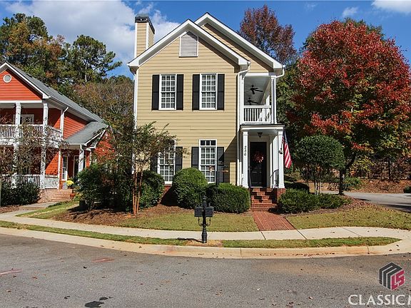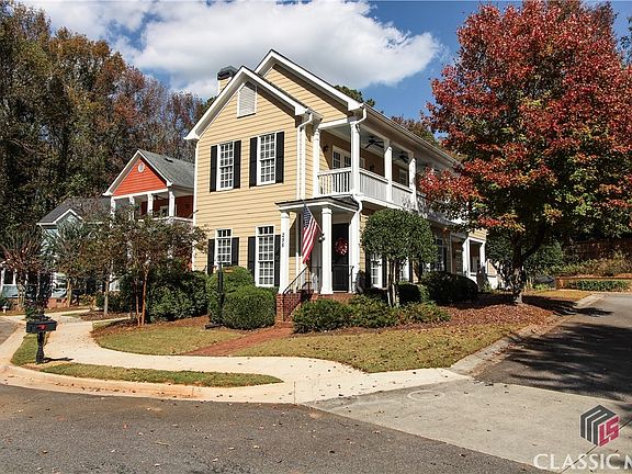 Over 3000 square feet! Charleston style, very well maintained by meticulous owners. Move in condition. New 50 year shingle roof by Bone Dry Roofing and new upper level HVAC in 2018. New exterior paint 2022. 5BR, 3.5BA, office/library and master on main. 10' ceilings and hardwood floors throughout on main level. Large family room with gas log fireplace. Large crown molding. Kitchen has tall custom cabinets, tile backsplash, bar for stools, large dining/breakfast area, large pantry, hot water dispenser, water filter, 60/40 stainless sink, stainless new microwave and stainless range & dishwasher. Double level lazy Susan in each of 2 corner cabinets, under cabinet lighting and new disposal. Wired for security system at all main level doors and windows. Most lights updated to LED. Large door casings on main level. Master has huge walk in closet, comfort height granite master bath counter, distressed edge tile large corner shower, distressed edge tile floors and separate bath tub. Upper level has office/library, one bedroom with large step in closet and private full bath with comfort height granite counter tops and tile floors. 2 bedrooms have jack and jill bath with comfort height granite counter tops and commode, large tile shower and tile floors. Large linen closet and storage closets on upper level. Rear 5th bedroom has huge walk in closet. Long upper level side covered porch has sky blue ceiling, 12" X 24" tile and was completely rebuilt in 2019. Lower side covered porch has brick floor and sky blue ceiling. Hardiplank type (cement basse) siding. Gutter screens. 20 acres of green space across the cul de sac from this home's corner lot. Neighborhood trails. 9/10 mile to Athens 10-loop bypass. 1.7 miles to Normaltown. 2 miles to The University of Georgia Health Sciences Campus. 2 miles to Piedmont Athens Regional. 4 miles to downtown Athens. 5 miles to The University of Georgia arches.