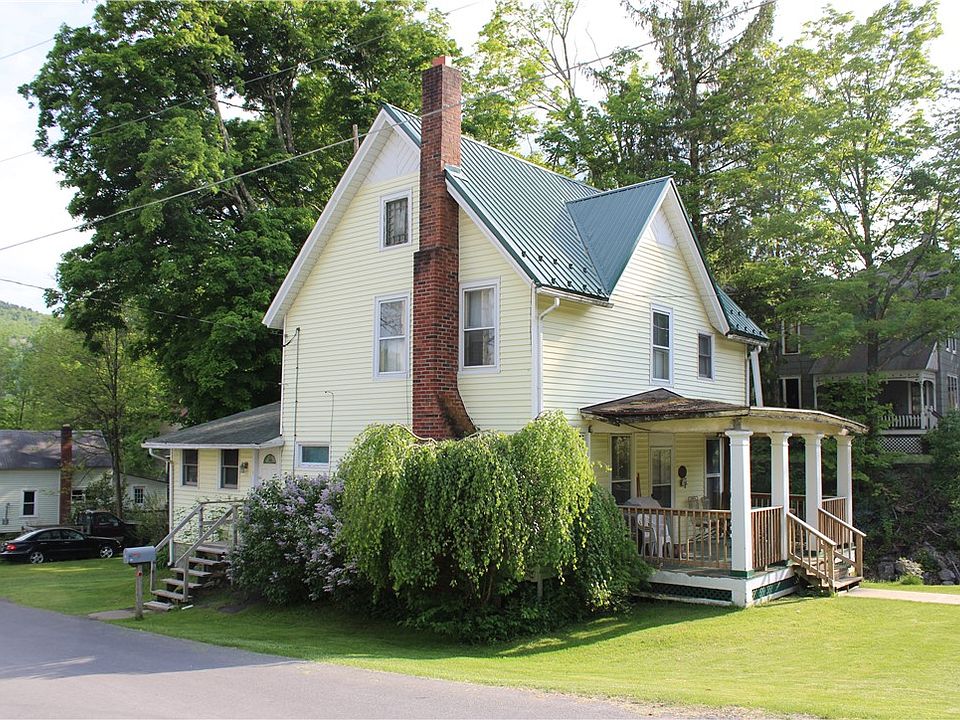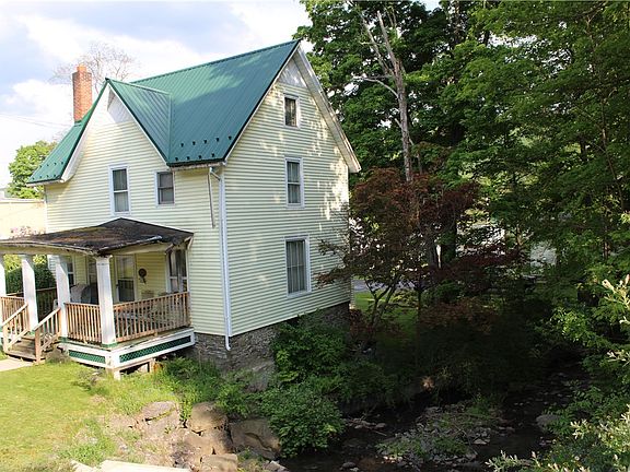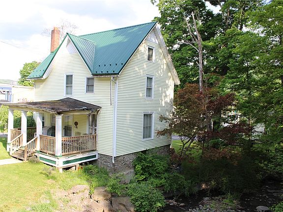MOVE RIGHT IN: Well maintained Worcester Hamlet home, NO WORK to be done first! New electric service, new septic tank, new metal roofing front & slate on back. Great kitchen counter space and cabinets, plus an area for a table. Formal dining room and living room with French Doors a stone fireplace with woodstove insert. One bedroom on main level, adjacent to a full bath plus 2 bedrooms on second level and a half bath with room for a shower stall. Seat on the front porch and watch and listen to the flowing creek cascading over ancient rock formations. Walk to stores, restaurants, school and pool. Easy on/off I-88 to Cobleskill and Oneonta. ALL YOURS, ONLY $99,500