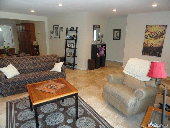 Tastefully remodeled including travertine floors, remodeled kitchen and baths, new slider windows and more. Extended master bedroom with walk-in closet, a private deck and access to the side yard. Large kitchen features a bar that opens to the living room. Nice, open floor plan. Large laundry/storage room with washer and dryer included. Parking for two cars in the driveway.