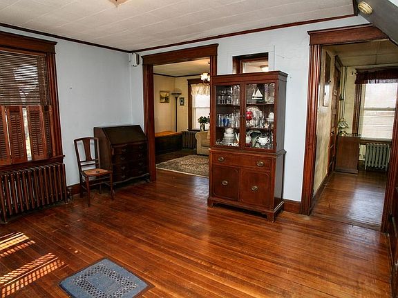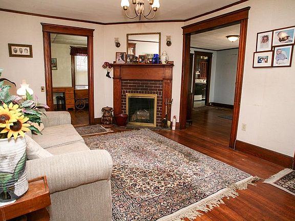 This classic 2-bedroom 1 bath home built in 1929 sits on a 1-acre stonewall surrounded corner lot. The wonderful Cape Cod style home has been a one-family property for about 100 years. The original hardwood floors and moldings add to the charm. The living room has the original brick fireplace and leads to a relaxing front porch. Good size eat-in kitchen with plenty of windows that leads to an enclosed back porch with laundry. Newer furnace and replacement windows. One car garage with attached workshop. Large yard plus additional field. Plenty of room for expansion. Being sold as-is.