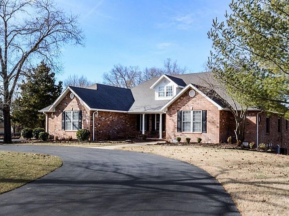 Stunning 6 bedroom/ 7 bath Branson home with impressive, well-appointed finishes and impeccable style! The living room is a focal point with an open design, custom wood beams and fireplace that exudes warm & cozy. Beautiful acacia wood and marble flooring, crown molding throughout, tasteful wainscoting in the formal dining room are all complimented by upgraded lighting with brushed gold fixtures. The kitchen boasts granite countertops, custom cabinetry, built-in refrigerator/freezer, large island, breakfast nook and hearth room. Bedrooms are all generously sized and main bedroom ensuite is simply gorgeous! Marble tile floors, custom marble and glass shower with two walk in closets. Many areas to entertain including game room, lower level family room and art studio. Upper deck with trex decking, lower covered patio and fire pit area. Freshly painted exterior, copper gutters, circle drive and three car garage. Located in a premiere Branson neighborhood with quick access to Hwy 65.