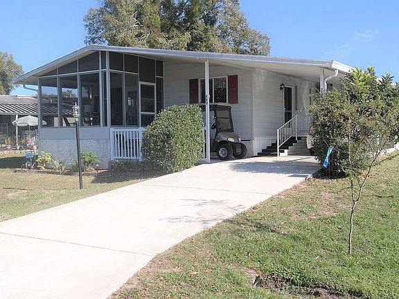 Newly updated home featuring large dining room with built-in china cupboard plus kitchen with breakfast bar. A screen porchw/vinyl windows allows you the pleasure of relaxing and watching the beautiful Florida Sunsets. You own your own land. County roads, street lights, water and garbage services. This 55 Plus Senior Community has many amenities and activities: 9 hole golf course, 2 clubhouses, 2 pools, tennis court, 4 pickleball courts, 8 shuffle board courts, 3 bocce courts, horse shoe pits, corn hole, ping pong, ladder golf, fitness room. Many activities: euchre, nines, pinochle, Texas hold-em, court whist, poker, dominoes, bingo, mahjong, aerobics, dinner dances, chapel service.
