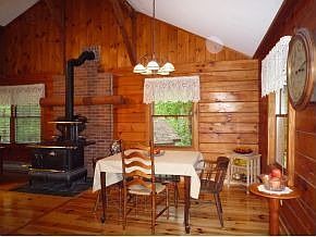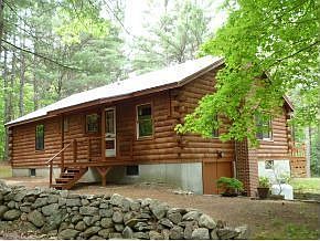 Absolutely charming Lincoln Log ranch set back from the road for privacy in a lovely woodland setting on over 6 acres with stonewalls, tall pines and lady slippers. You won't find a more immaculate and cozy home, recently refurbished with a complete kitchen remodel, all new pine floors and updated baths. Wonderful open concept interior with cathedral ceiling and a Glenwood stove that adds warmth and ambiance. A large screen porch and deck, full walk-out basement with woodstove and workshop plus a 2 car garage complete the picture. Even if you've never considered a log home, you've got to see this one!