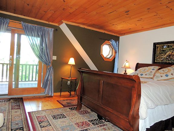 Stunning Beaver Mountain Log home surrounded by 13 acres of wooded privacy only 3 miles from Ithaca and Cornell. Cathedral ceilings in the Great Room is open to a lovely kitchen. Master suite is upstairs in a spacious loft with a wonderful balcony that has a tree house feel to it. New beautiful heated sunroom leading to deck, full lower level in-law suite and brand new well-built extra large 2 car garage. Large backyard is level and private. This property and most of neighbors are protected from development in the Finger Lakes Land Trust. House hidden from road behind a veil of dense pines.