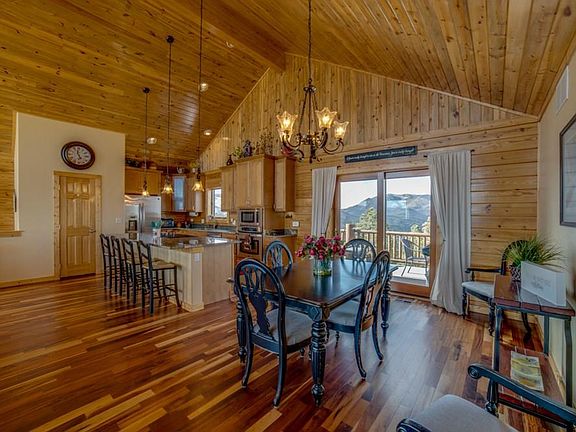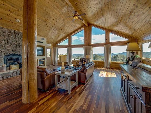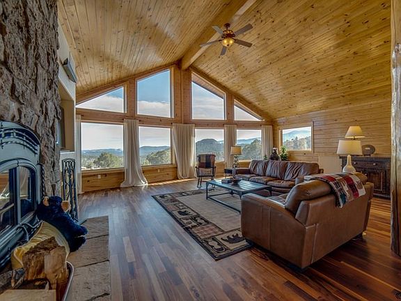 Stunning log home with utmost attention given to detail and quality! Upon entering, you'll be drawn to the beautiful Brazilian Tiger Hardwood Flooring, Beetle Killed Pine Tongue and Groove Ceiling, and the gorgeous stone fireplace with airtight wood burning insert! The expansive living room is open to the kitchen with beautiful granite, Island with breakfast bar, Starcraft Cabinetry with dovetail, soft close drawers, pull-outs and a pantry. Geothermal heating and cooling, newly installed water well, pump, and there is a water treatment system. Property is turnkey deluxe... just bring yourself. Fully furnished, all stainless-steel appliances, leather couches, flat screen TVs and all you need! There are two master suites on the main floor, an unfinished walkout basement. The 2car garage is also downstairs for easy in and out. This home is situated with the large picture windows framing in the views as well as taking full advantage of passive solar. From every window enjoy some favorites, you'll see the Collegiate Peaks, Pike Peaks, Sangre De Cristos, Delilah, East and West Antelope, Cap Rock Ridge, and Black Mtn. just to name a few. Gated, private, community! Come see for yourself!