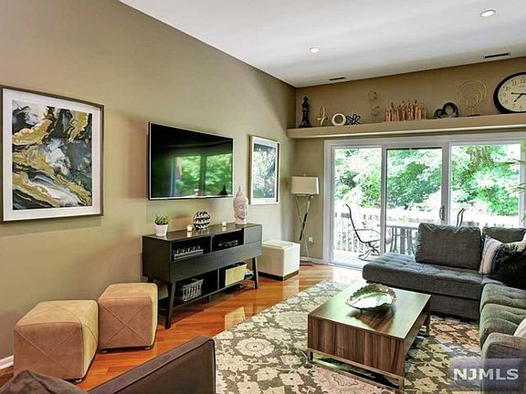 Ramapo Ridge II End Unit Condo Updated to the MAX!! Exotic Bolivian Rosewood Hardwood Floor through out! Extra High Ceilings with Open Floor Plan, High Hat Lighting, Custom Tile Bathrooms with Vessel Sinks, 2 Marvin Sliding Doors to Two Tiered Deck (one deck covered with natural gas connector for grill). Newer furnace and Hot Water Heater. Newer SS Appliances, Full Granite Backsplash. Light and Bright!! Extra Large Garage has room for Storage and SUV. CLICK ON Virtual Tour for additional pictures. Ramapo Ridge Rec offers: pool, kiddy pool, sun deck, BBQ area, play ground, tennis, basketball, game room, gym, lockers and party room.