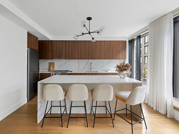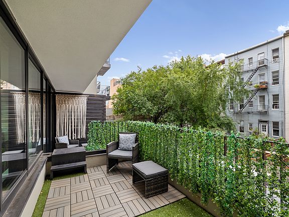 Welcome to residence 2B, a 1135sf floor-through 2-bedroom, 2-bathroom with exceptional south facing terrace located in Prime Williamsburg. The open concept living room, dining area, and kitchen provide a warm and inviting atmosphere. The kitchen is designed with a custom island that maximizes both space and storage. It boasts sleek quartz countertops, stylish wood veneer cabinetry, a built-in vented oven hood, and high-end stainless-steel appliances from Bertazzoni, Liebherr, and Blomberg. Just down the hall, you'll discover a storage room, and the second full bathroom finished with menta scuro slab tiles and a deep soaking tub. The tranquil primary bedroom includes an en-suite bathroom with chic menta scuro Nasco stone tiles, a custom floating vanity, and a glass-enclosed shower. The second bedroom is generously sized, equipped with a walk-in closet and direct access to the expansive terrace that runs the length of the residence. Additional interior features are beautiful engineered white oak floors, energy-efficient LED lighting, central heating and cooling, vented dryer, and floor-to-ceiling Reynaers windows with custom shades that provide ample natural light with northeastern and southwestern exposures. Nestled in the heart of Williamsburg 256 North 9th Street is a boutique condominium designed by New York City-based firm INOA Architecture. Residents enjoy a common rooftop deck and professional building management. The building is just moments from dozens of trendy restaurants, bars, cafes, and shops. It is a few blocks from McCarren Parkwhich has several sports fields and hosts a weekly greenmarketand it is a short walk to Bushwick Inlet Park and Smorgasburg. Public transportation options include the G and L subway lines and the NYC Ferry.